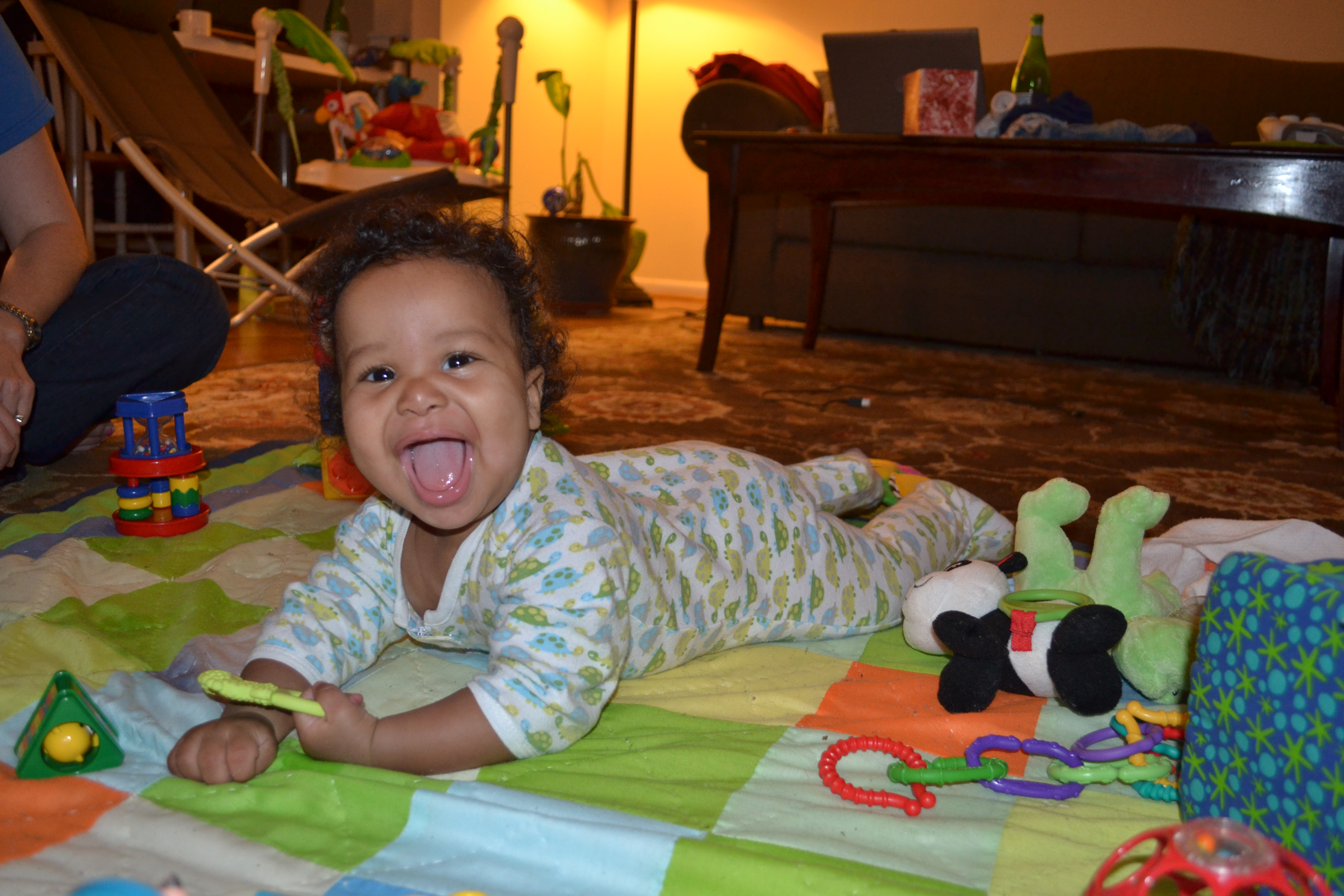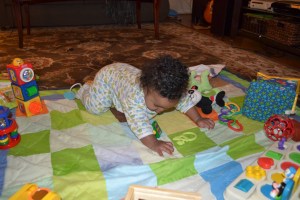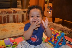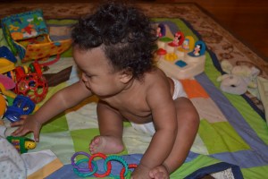 Isaac takes playtime pretty seriously!  He’s not happy in a swing or his jumparoo anymore.  He wants to be sitting up or moving around on the floor, knocking over his blocks, or chewing on his toys.