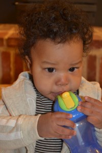 Oh, and he also recently learned how to use a cup with a straw!  He loves it just as much as the sippy cup, and figured out how to drink from it right away.  He’s not really drinking water regularly, but it makes for a fun distraction every now and then.