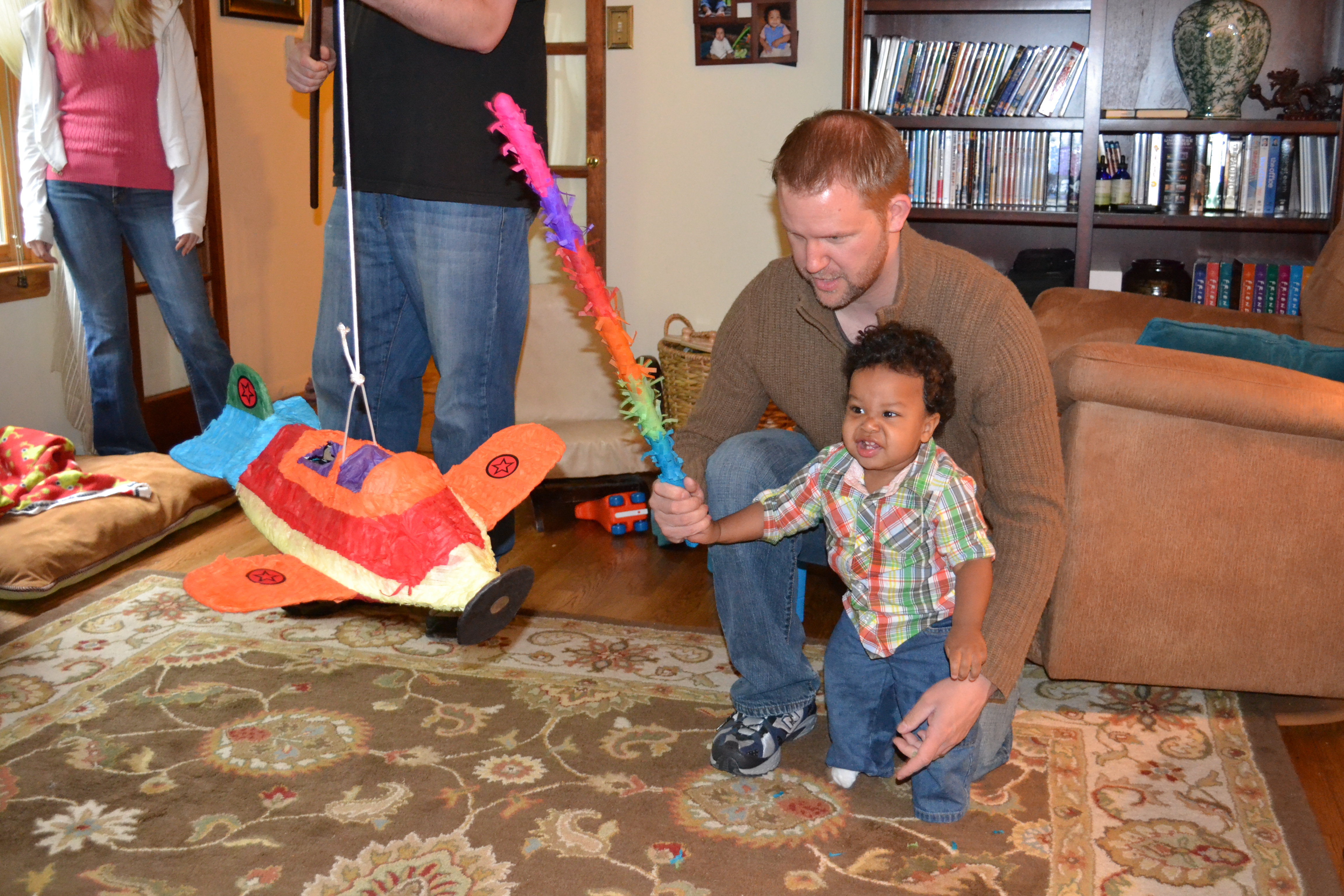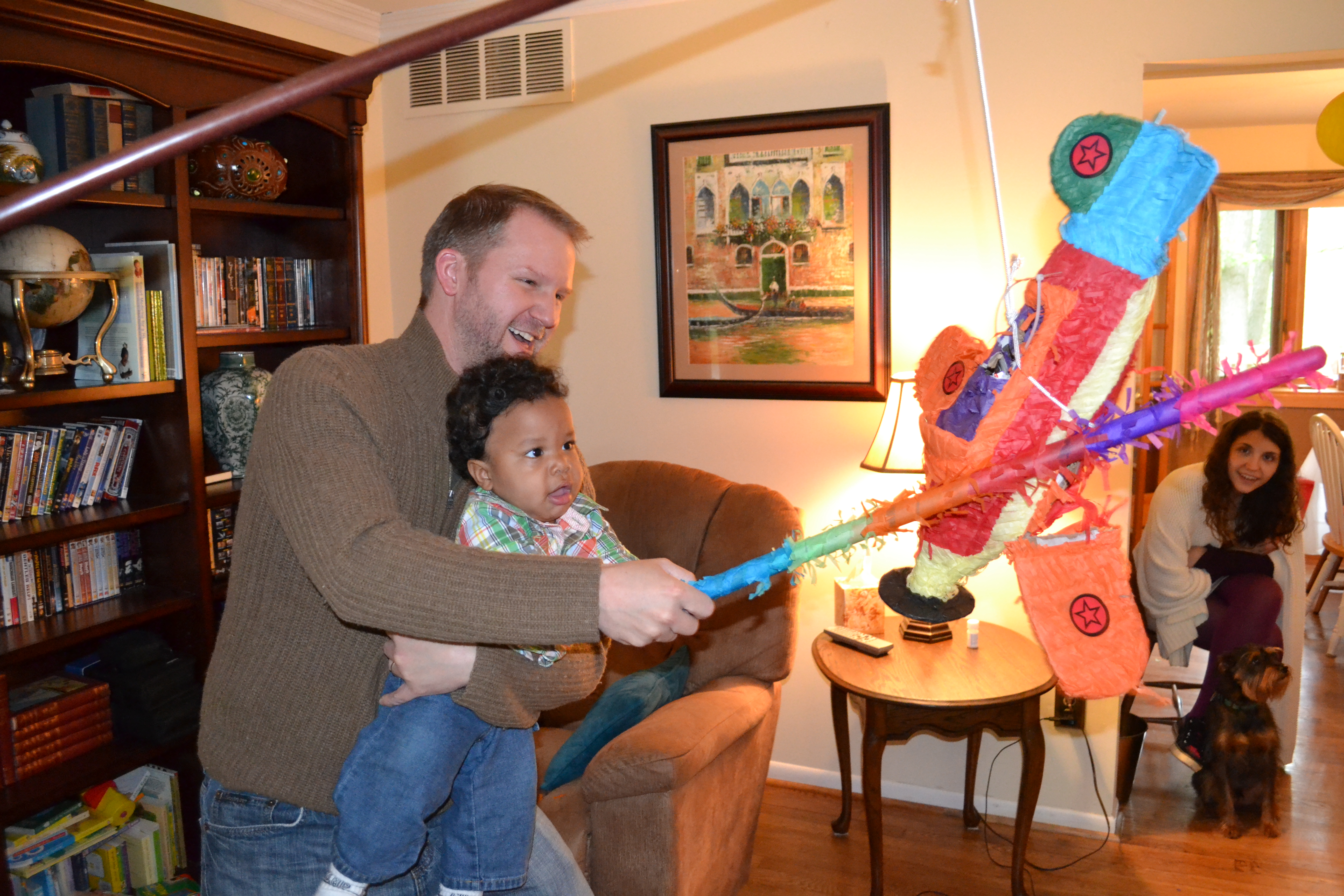 After playing, eating lunch, and chowing down on dessert, Uncle Ben brought out the pinata! The kiddos all got to take a whack at it – several whacks, in fact.