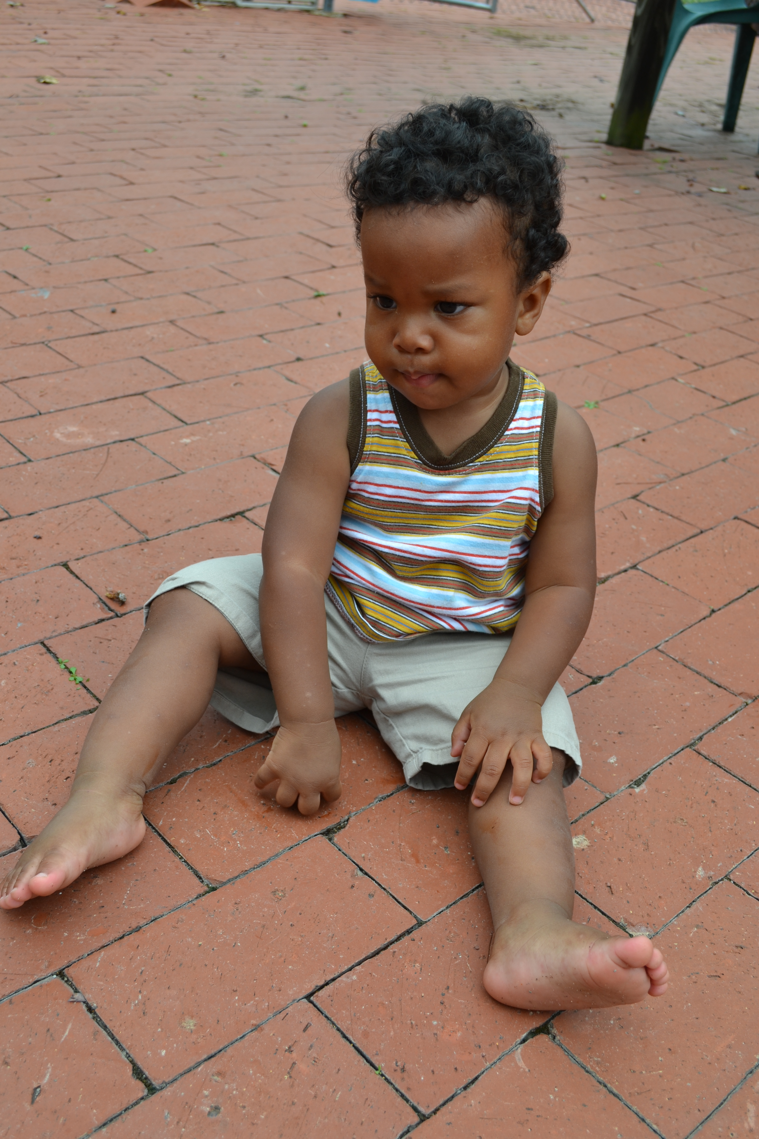 He’s holding steady at 26 lbs.  All that running around has really started slimming him down (not that you could ever call him slim, lol).    His thighs are still nice and meaty, but he’s definitely getting longer instead of wider.  He’s wearing 2T pajamas…hold me!  His feet are ginormous – he’s a 5 1/2 extra wide and we had to special order him shoes to get ones that fit him right.  His feet are almost as wide as they are long, lol.