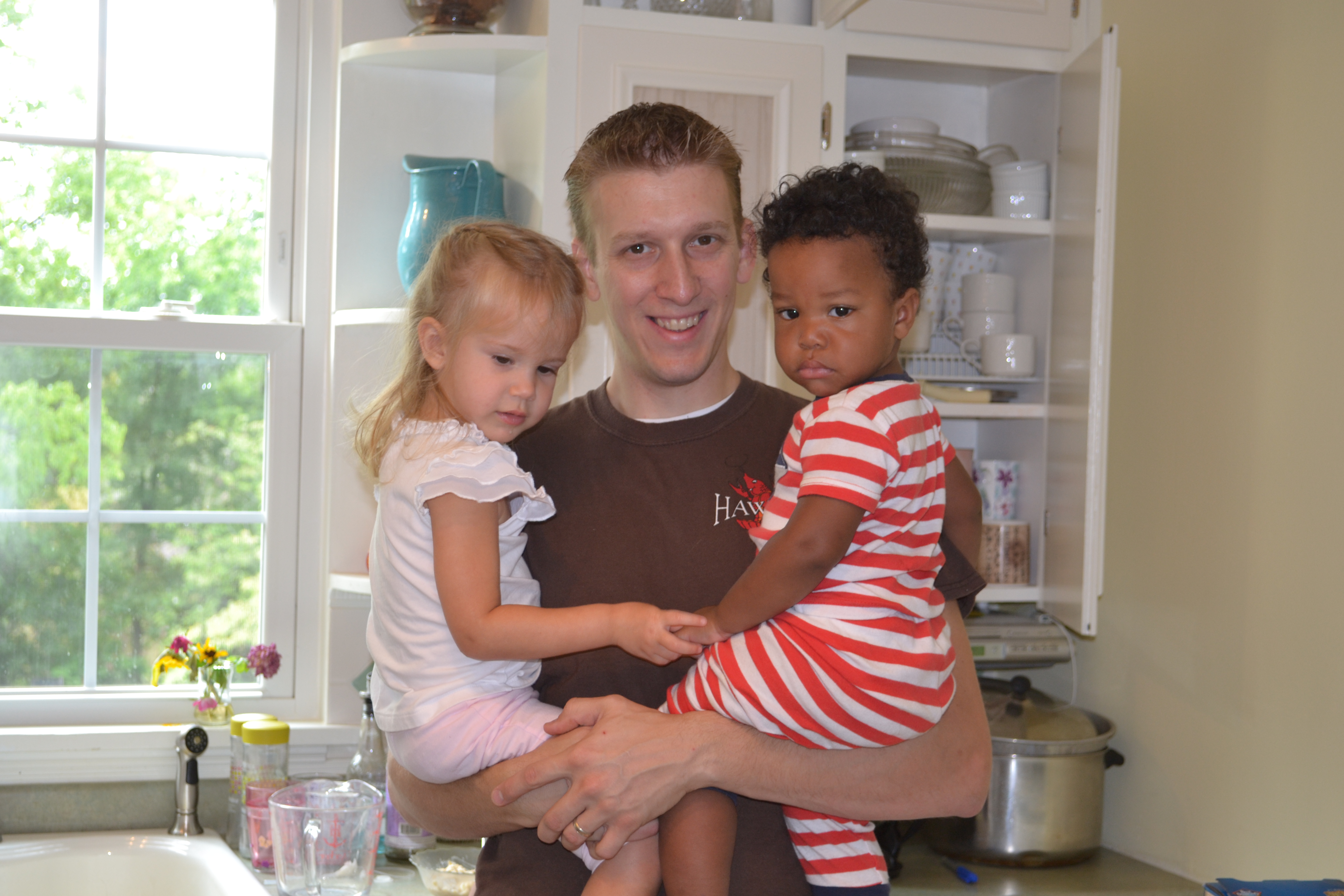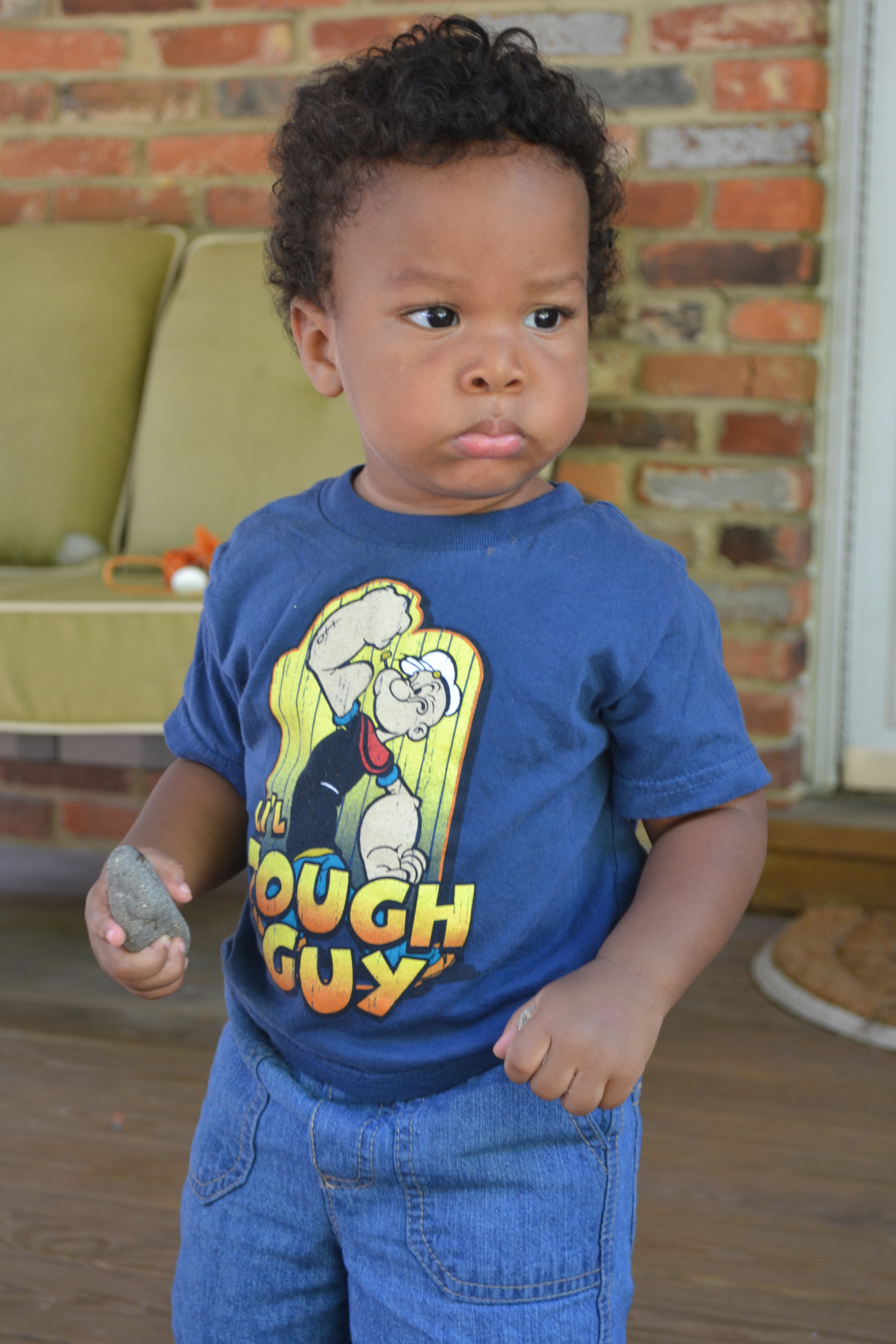 He takes a while to warm up to women, and really is disinterested in most females, but he loves most men immediately.  And the rougher looking, the better apparently.  At the MVA the other day, he picked out the toughest looking guy there with tons of tattoos and made friends.  The guy told me “maybe he’s good luck”.  I asked him if he needed good luck, and he responded that he was there for a hearing, so yeah.  I wished him luck and at that moment Isaac started to yell “yay!” and clap wildly, which made us both break out laughing.  If a guy has tattoos, you can bet Isaac will want to befriend him – he loves pointing at all the pictures (this one guy had both a boat AND a pirate guy with a hat – big win!).  He loves old men with walkers.  On our recent trip to Missouri, every time my brother in law was around he’d run up and hold his arms up wanting to be held.  He’d hug Kyle’s neck and settle into his arms happily (much to the chagrin of my niece).