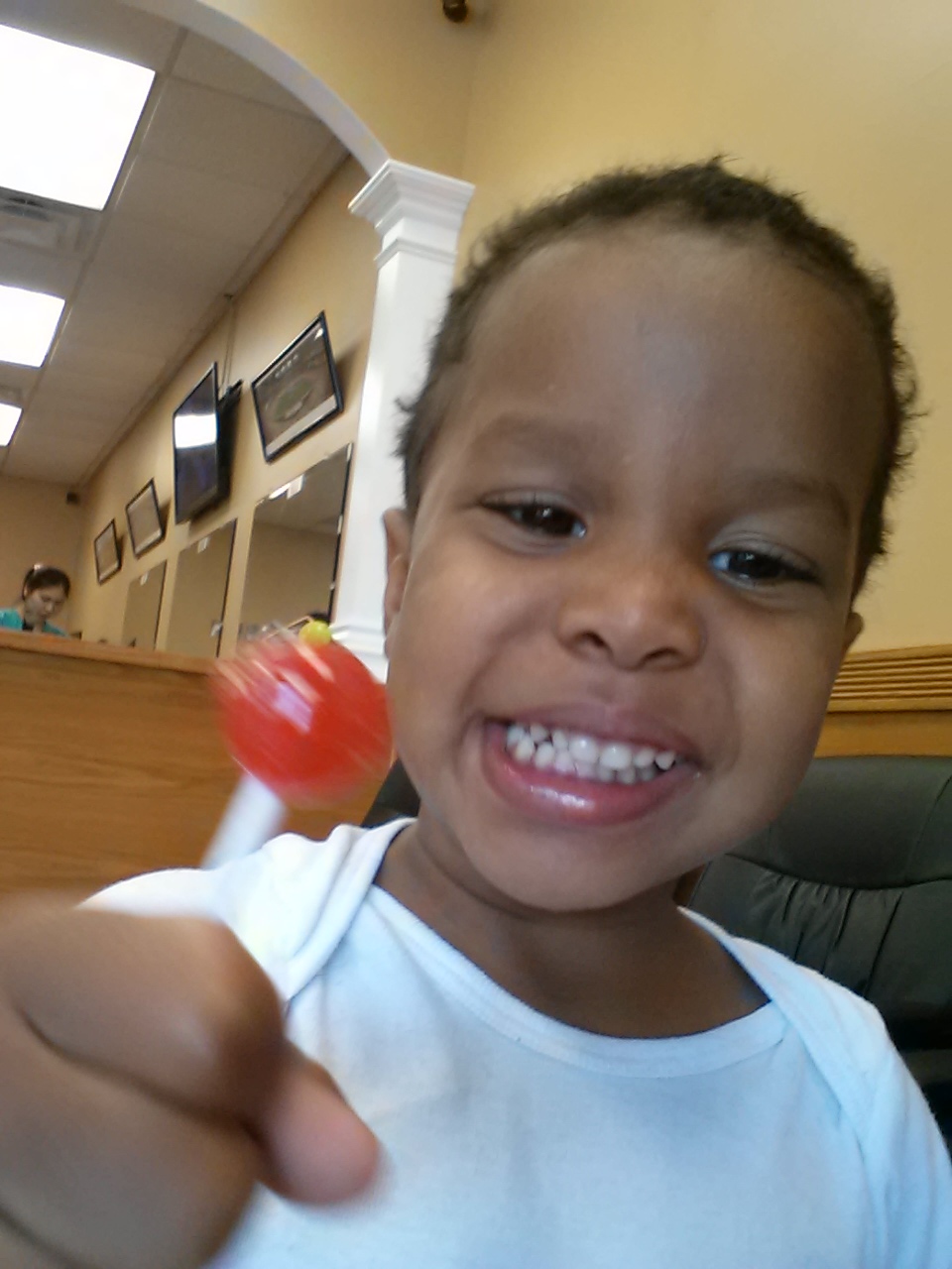 He was more excited about the lollipop than posing for the camera…
