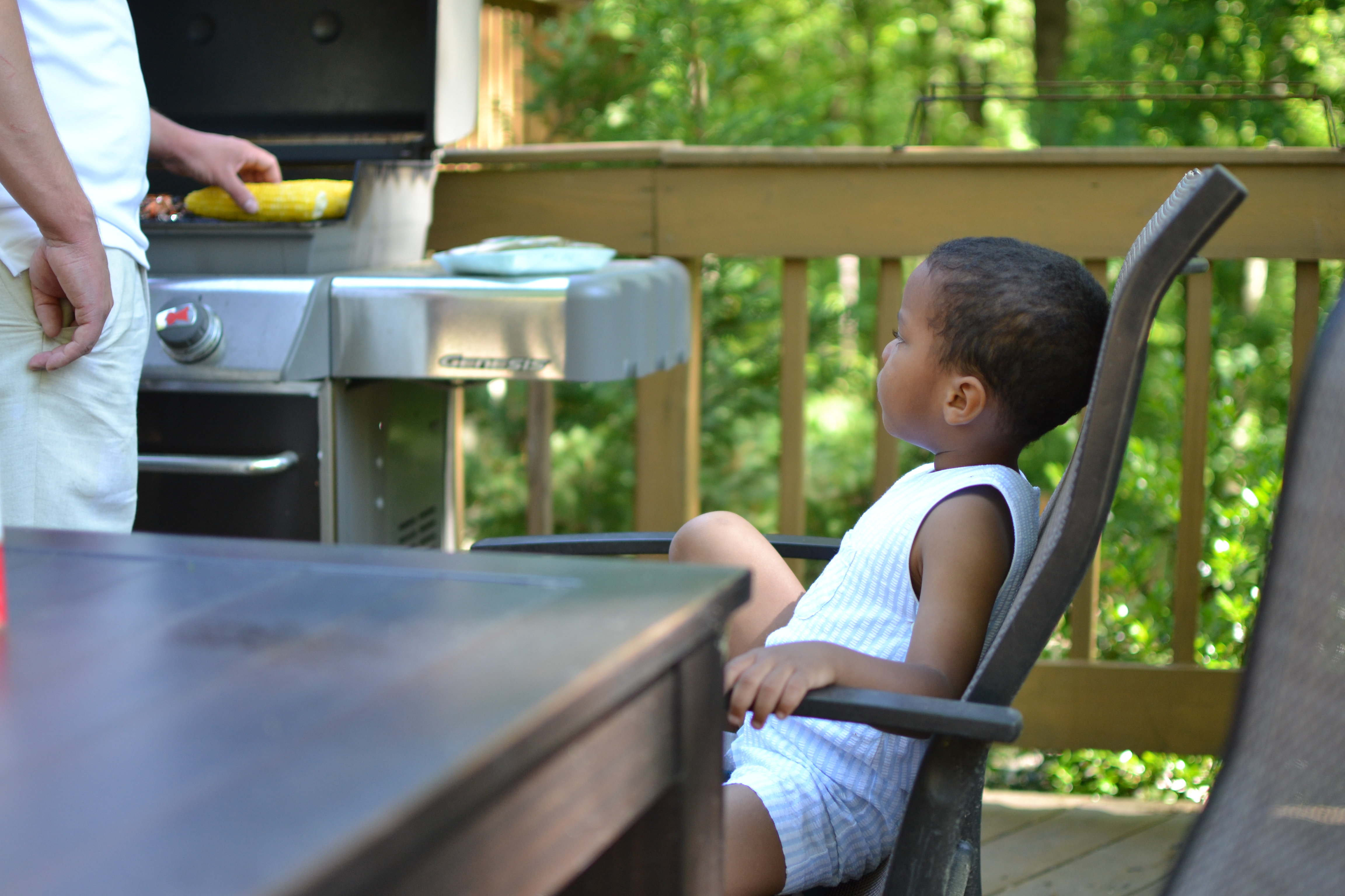 Watching Daddy work the grill.