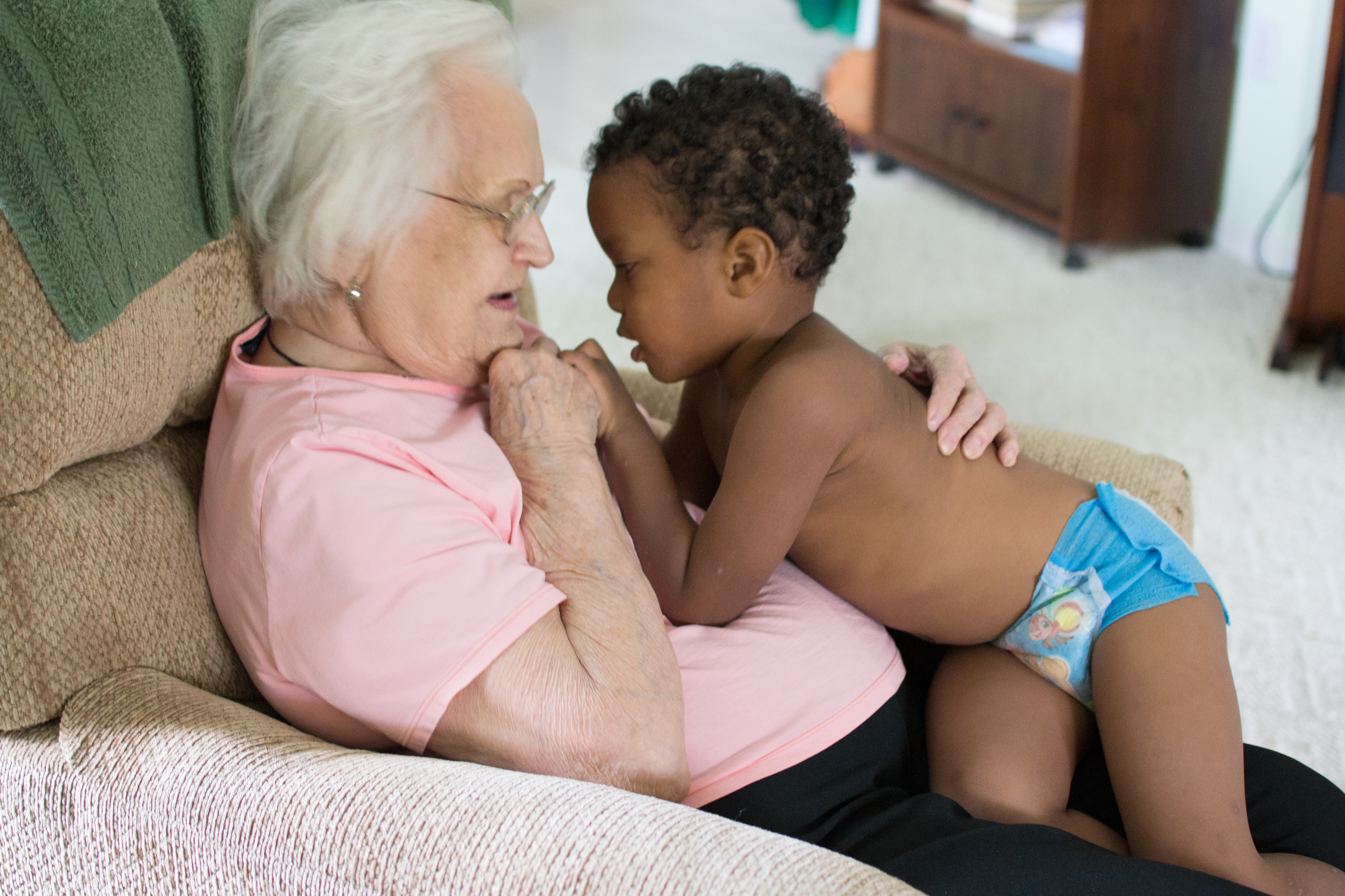Nene and Isaac hit it right off! He loved telling her stories – mostly about dragons and dinosaurs. He was fascinated by her cool cane, nifty magnifying glass, and the organ that Dede used to play.