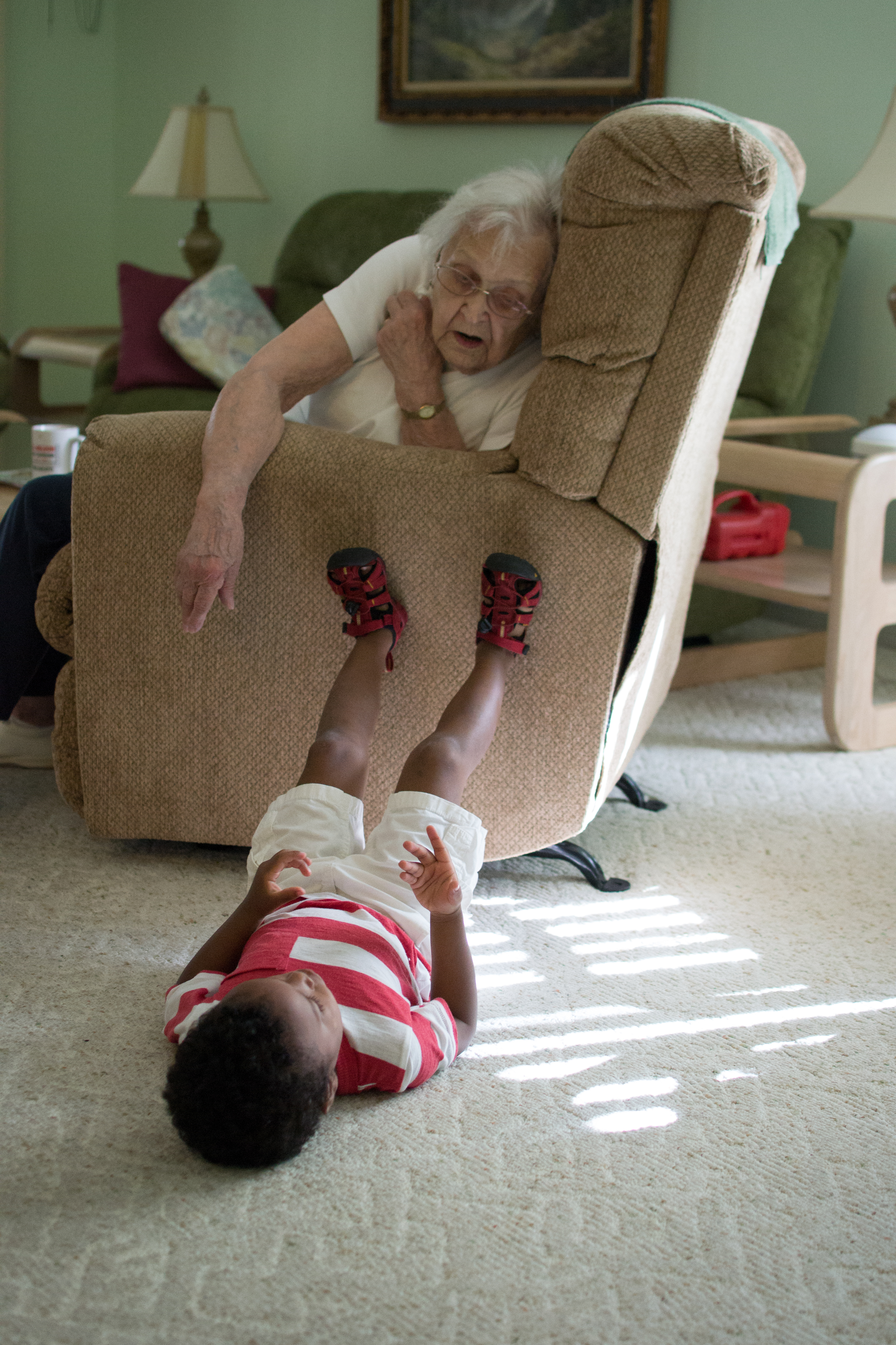 Isaac was so excited to get on a plane to go see Nene! We hadn’t seen Chris’ grandmother since he was 9 months old, so we were looking forward to spending time with her. Isaac loves looking at the pictures of her and him on our living room wall, so he was excited to see his great-grandmother in person for the first time in his young memory.