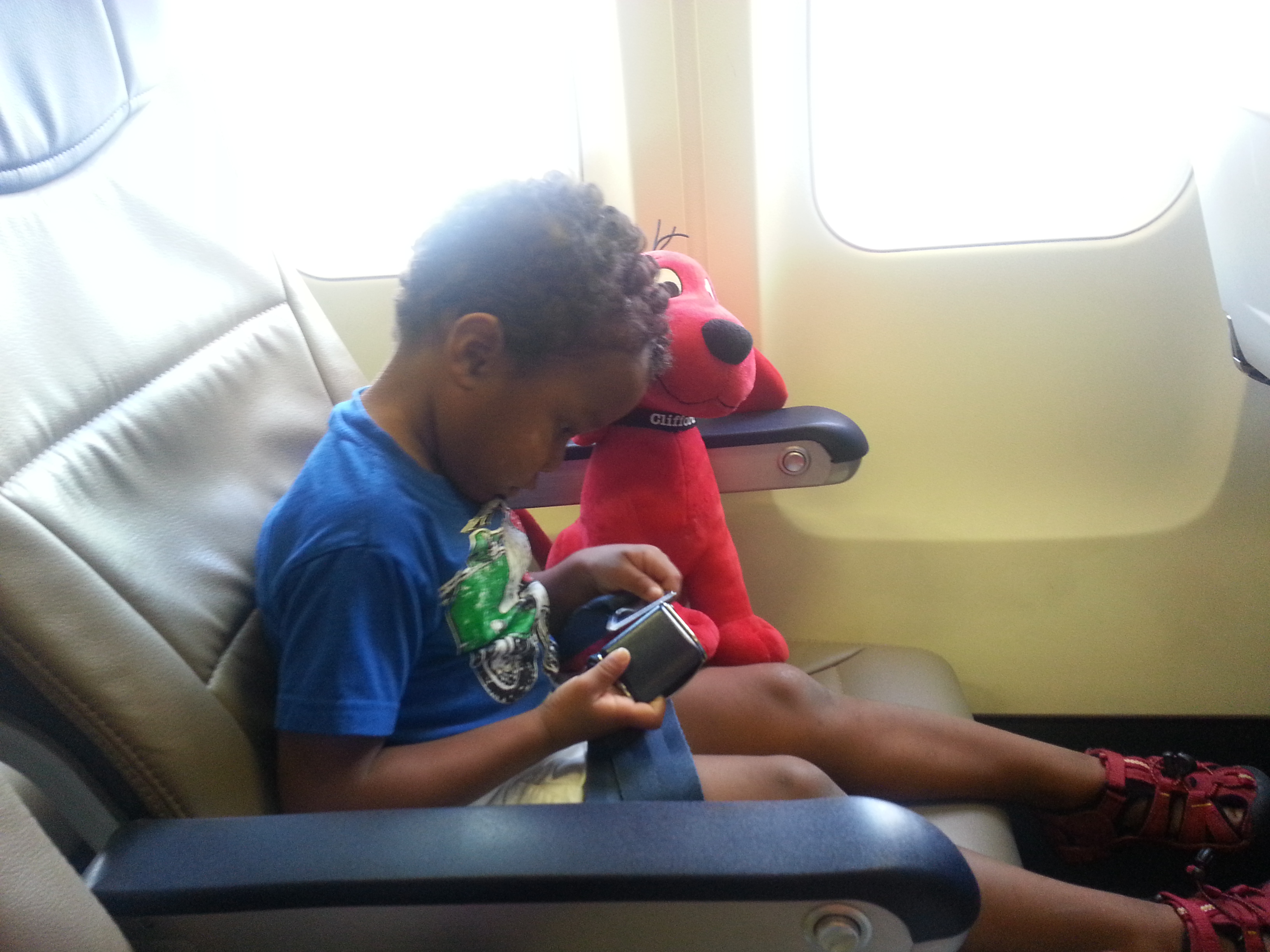 He got a special new suitcase with light-up wheels, and brought his Clifford along for the trip. He carted his own luggage through the airport all by himself!